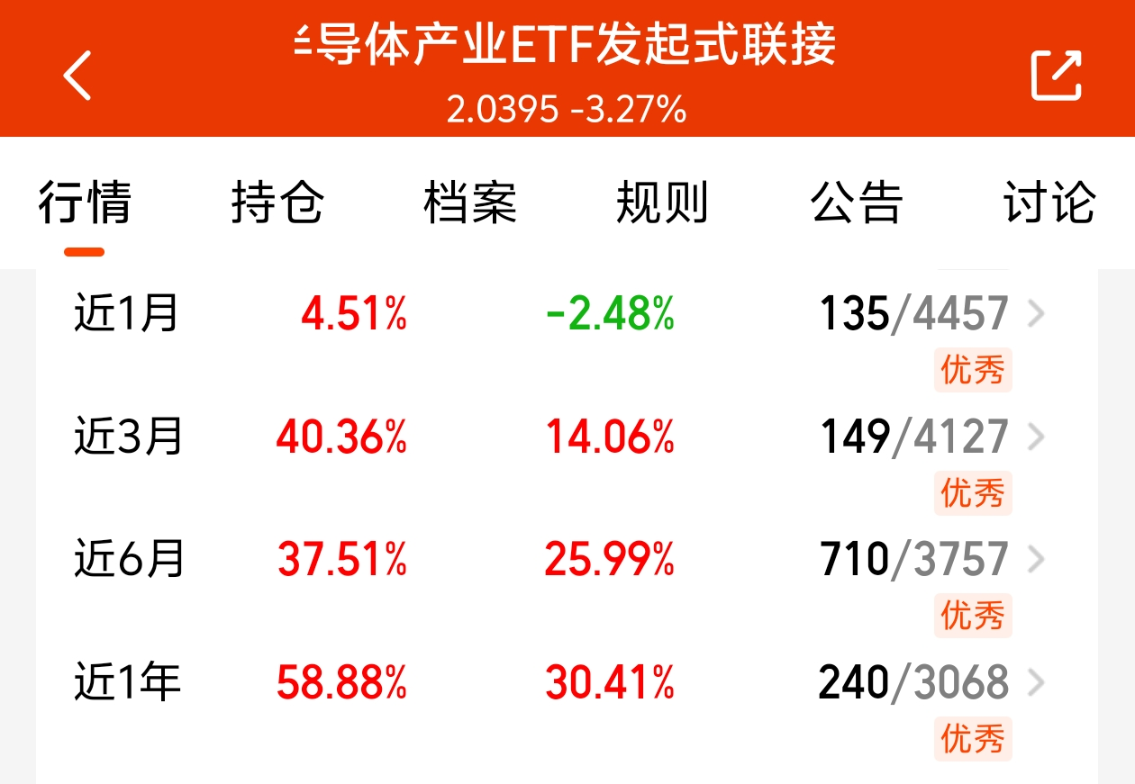 今天大盘指数高开高走,走势非常强劲,今天科技板块,走出修复行情,期待后市芝麻开花,节节高升!$招商中证半导体产业ETF发起式联接C$招商中证半导体近三个月涨幅40.36%,近一年涨幅58.88%,经过最近的调整,流星还是比较看好大科技后市的!目前我们可以逢低分批次布局,国产化替代加速,我们的半导体会雄起的,行情回暖,干就完了!