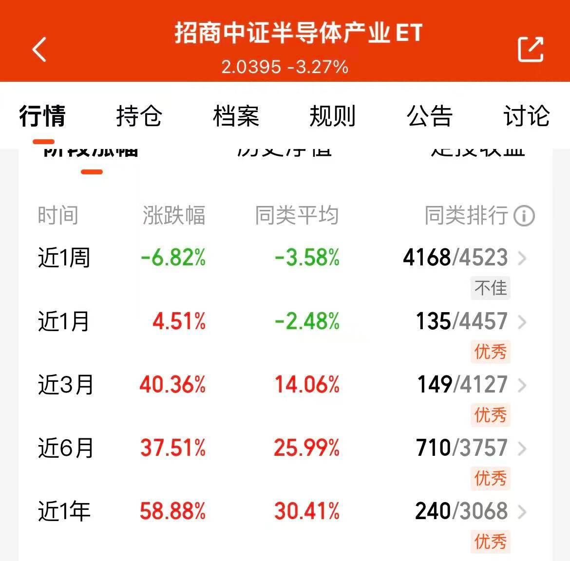 今天A股迎来不错的反弹啦,三大指数均上涨了,科技赛道这边也是涨幅不错,半导体今天也是回暖了,当下半导体产业链进程加速,未来上涨的空间是比较大的。$招商中证半导体产业ETF发起式联接C(OTCFUND|020465)$估值上涨1.68%,近三个月涨幅40.36%,持仓涵盖中微公司、北方海创、寒武纪等等龙头企业,前景广阔,我继续看好未来!