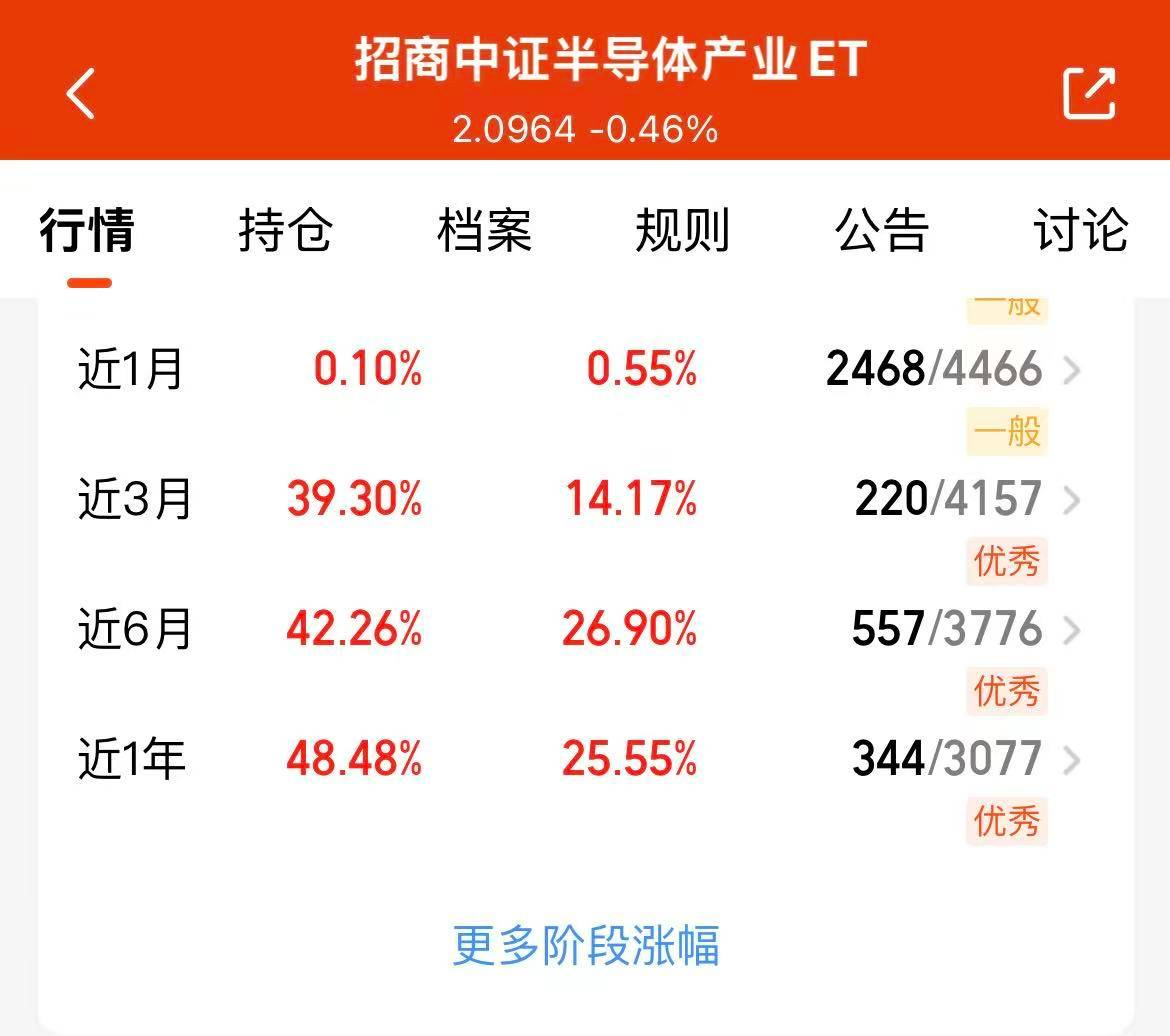 今天大盘反弹上涨啦,三大指数高开高走,科技赛道迎来大反弹,半导体大涨哟,$招商中证半导体产业ETF发起式联接C(OTCFUND|020465)$估值上涨3.69%,近一年收益率48.48%,业绩优秀,重仓有寒武纪、北方海创等龙头企业,而且眼下也有通过“十五五”规划的利好,未来可期,我继续看好这个方向。