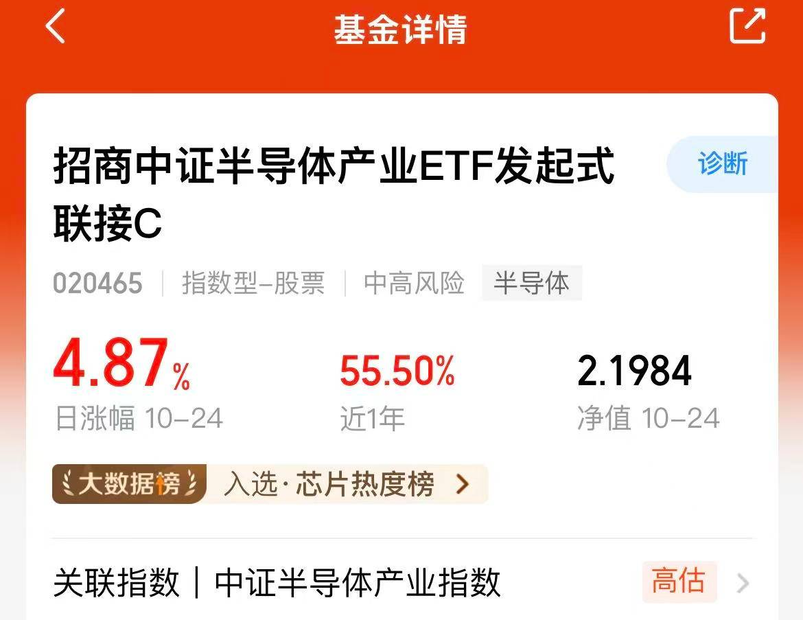 今天大盘高开高走,上涨的个股比较多,半导体也是继续上涨啦,$招商中证半导体产业ETF发起式联接C(OTCFUND|020465)$近一周涨幅7.79%,近三个月涨幅44.03%,业绩优秀,持仓有寒武纪、北方海创等龙头企业,光刻胶作为半导体等的基础材料,需求不断增加,所以半导体前景是非常不错的!