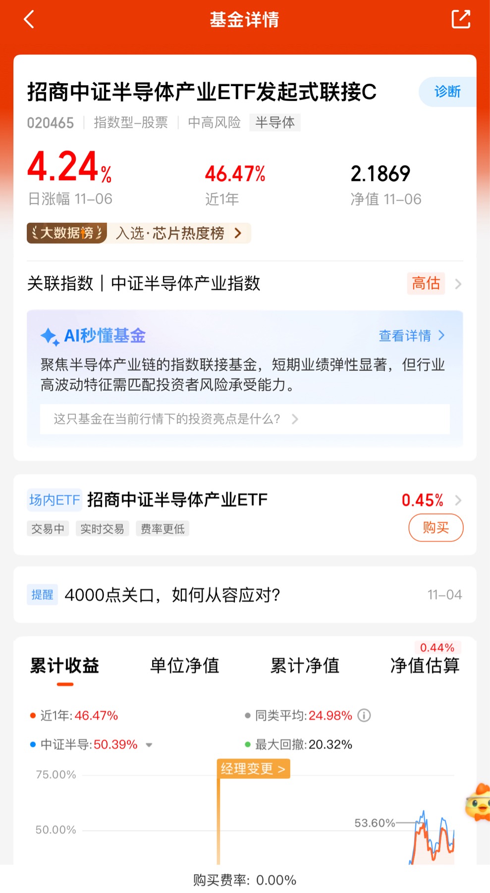 $招商中证半导体产业ETF发起式联接C$ 紧密跟踪中证半导体产业指数,全面覆盖设备、材料等关键环节。