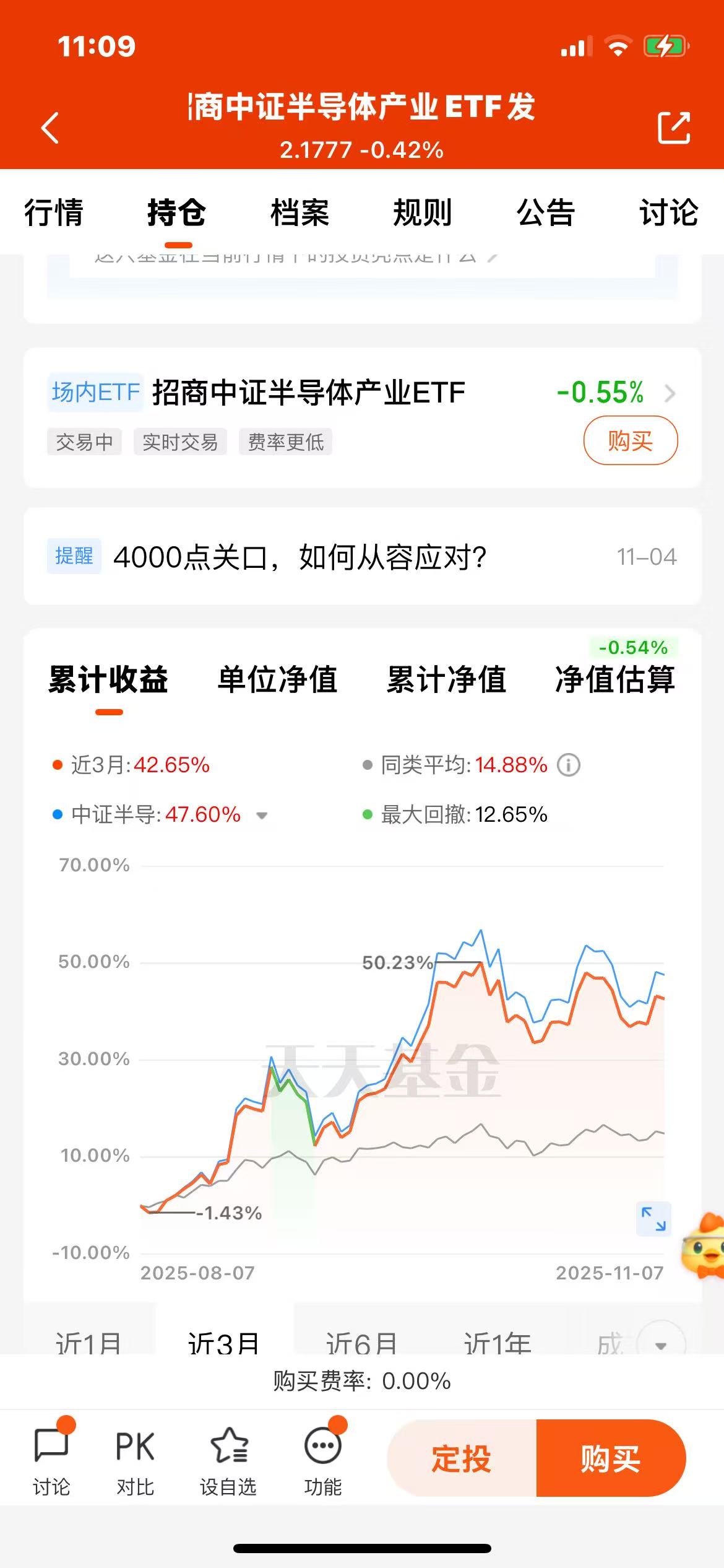 近三个上涨42.65%,涨幅还是挺大的!$招商中证半导体产业ETF发起式联接C(OTCFUND|020465)$