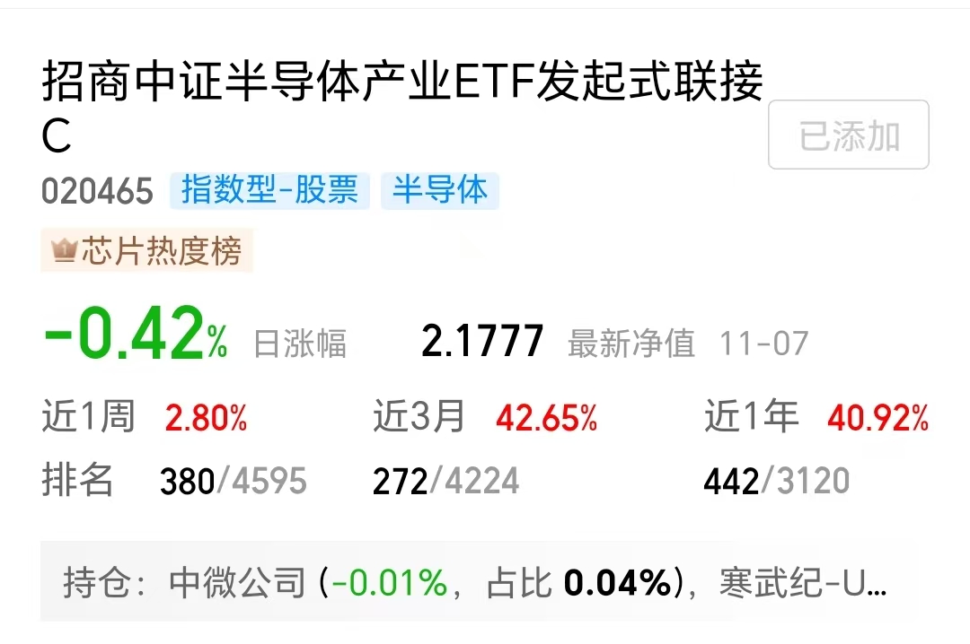 $招商中证半导体产业ETF发起式联接C(OTCFUND|020465)$聚焦半导体产业核心环节,近3个月涨幅42.65%,业绩不错,接着看好它的表现啦!