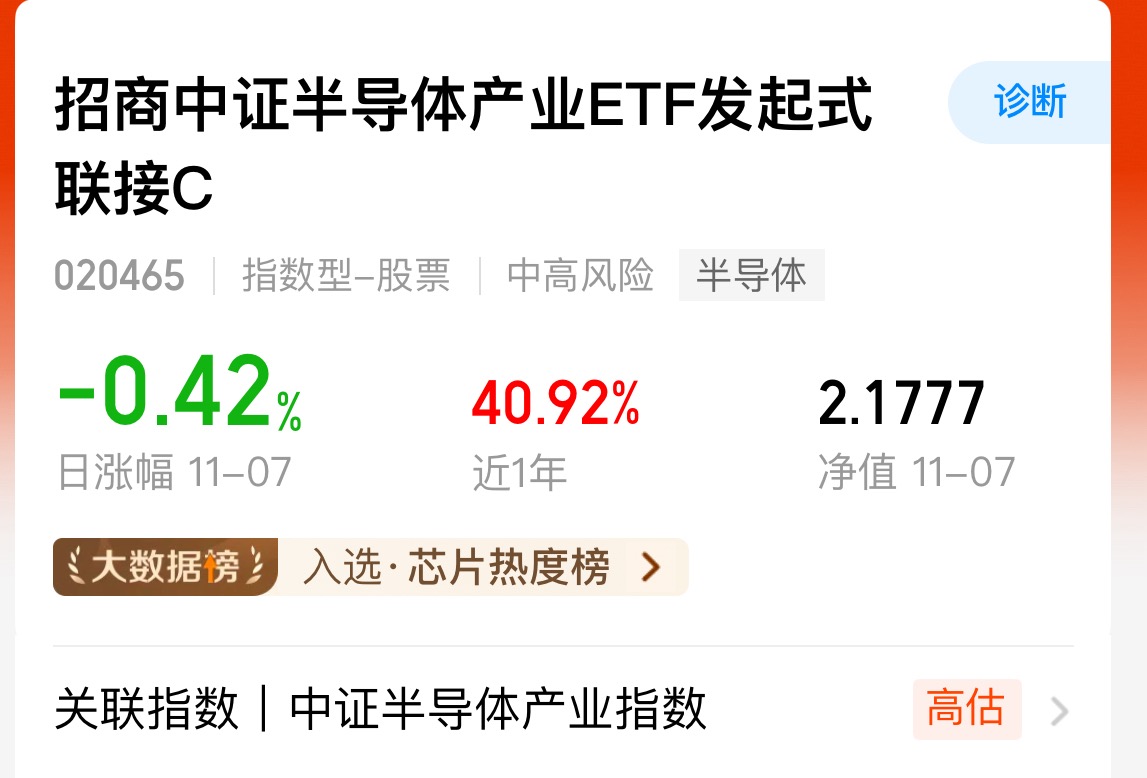今天市场走势分化,科技板块午后开始回暖,半导体也是有跌转为了上涨,存储芯片的涨价趋势还在延续,虽然说近期板块有所波动,但是这是前期商场后的正常调整,长期来看行业向上呢,大方向应该不会变$招商中证半导体产业ETF发起式联接C$ 这只基他投资了中威公司海光信息等一批行业龙头年化收益率达到40%以上,业绩做得还是挺稳的,半导体作为科技领域的重要方向,后续还是值得期待的