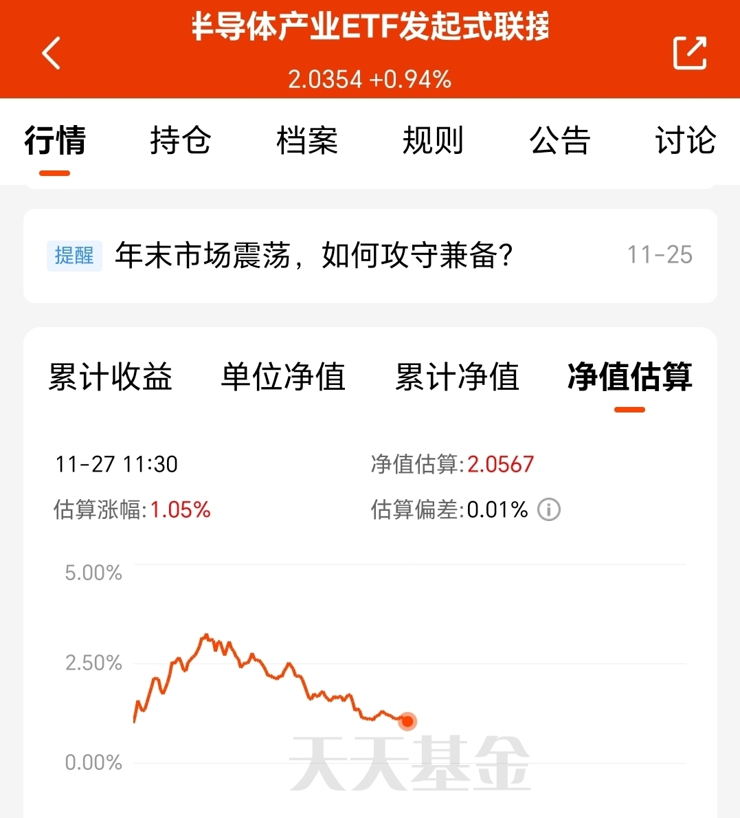 截至发文前$招商中证半导体产业ETF发起式联接C$ 预计上涨1.05%。下午不跳水的话,可以实现四连涨了。