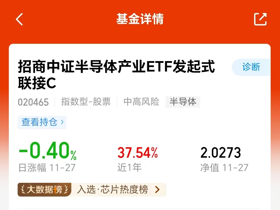 今天A股低开高走给力呀!我一直蹲的半导体赛道盘中触底后快速拉升反转,反弹力度拉满啦!眼下国内GPU 龙头都开始申购了,相关企业三季度产能全满,行业需求大幅增加。我持有的$招商中证半导体产业ETF发起式联接C(OTCFUND|020465)$近一年都涨超37%了,表现不错!这赛道长期逻辑特扎实,成长潜力我是继续看好呢。