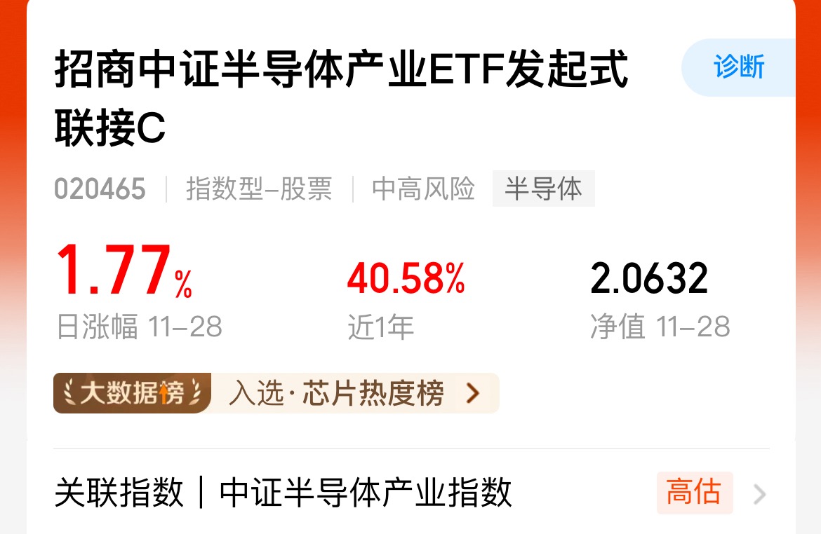 今天早盘三大指数震荡拉升,科技小幅度回落,不过午后科技大反弹半导体拉升了,从当前来看,半导体前期震荡后进入正常的估值,目前半导体估值上涨超1%$招商中证半导体产业ETF发起式联接C$ 这只基金跟踪中正半导体业绩做的也比较稳健,可以继续上车