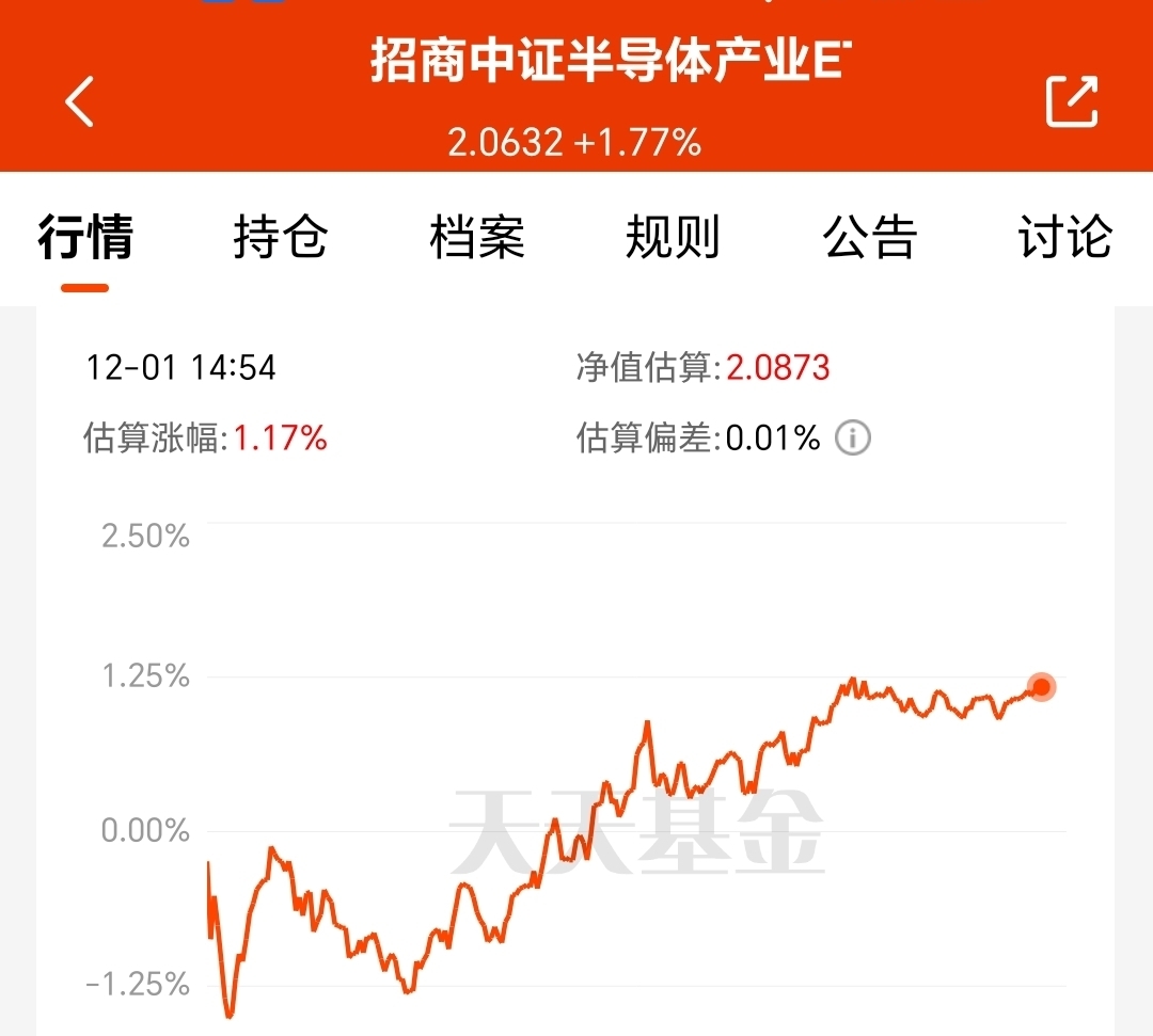 上午我还在说对半导体很乐观,下午就拉升了。截至发文前$招商中证半导体产业ETF发起式联接C$ 预计上涨1.17%。