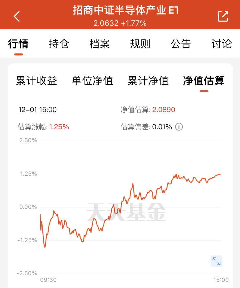 半导体板块今天又接着大涨,$招商中证半导体产业ETF发起式联接C(OTCFUND|020465)$预估涨幅1.25%。技术进步还能用到AI领域,长期来看这个方向挺有潜力。这只基金近6个月更是涨了48%,表现很亮眼。趁着板块强势、成长逻辑清晰,我准备继续分批加仓。