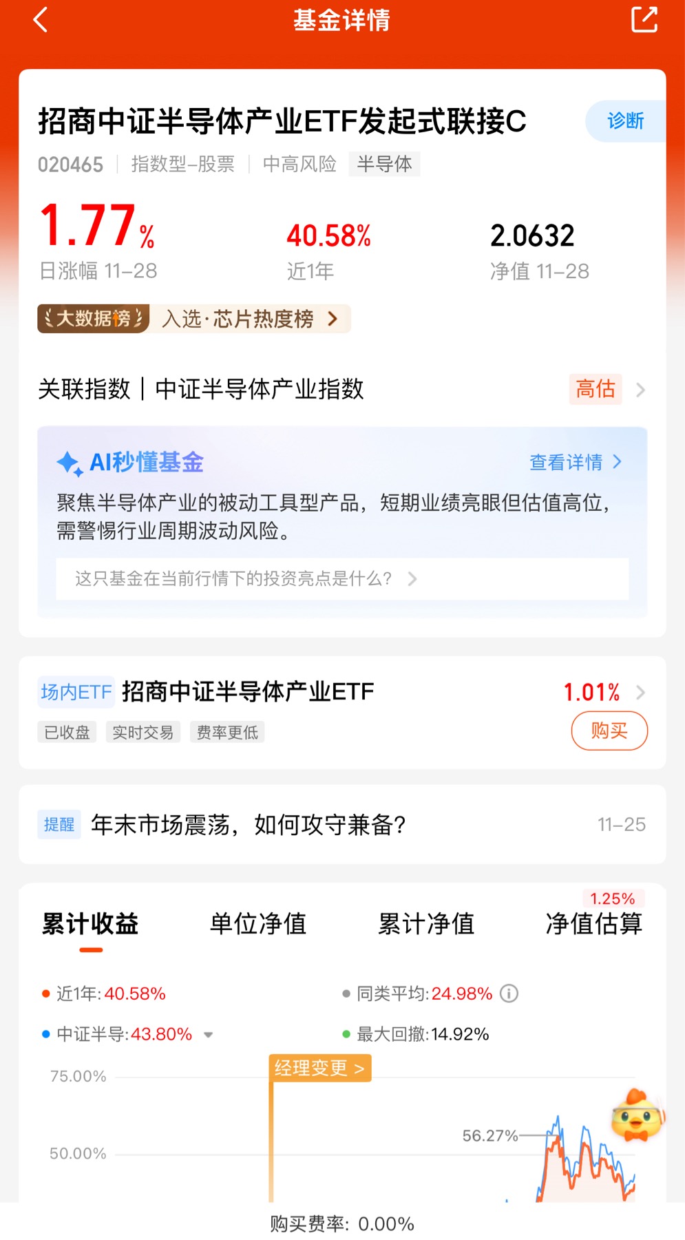 半导体作为AI发展的算力基石,将核心受益于这轮产业浪潮。$招商中证半导体产业ETF发起式联接C$