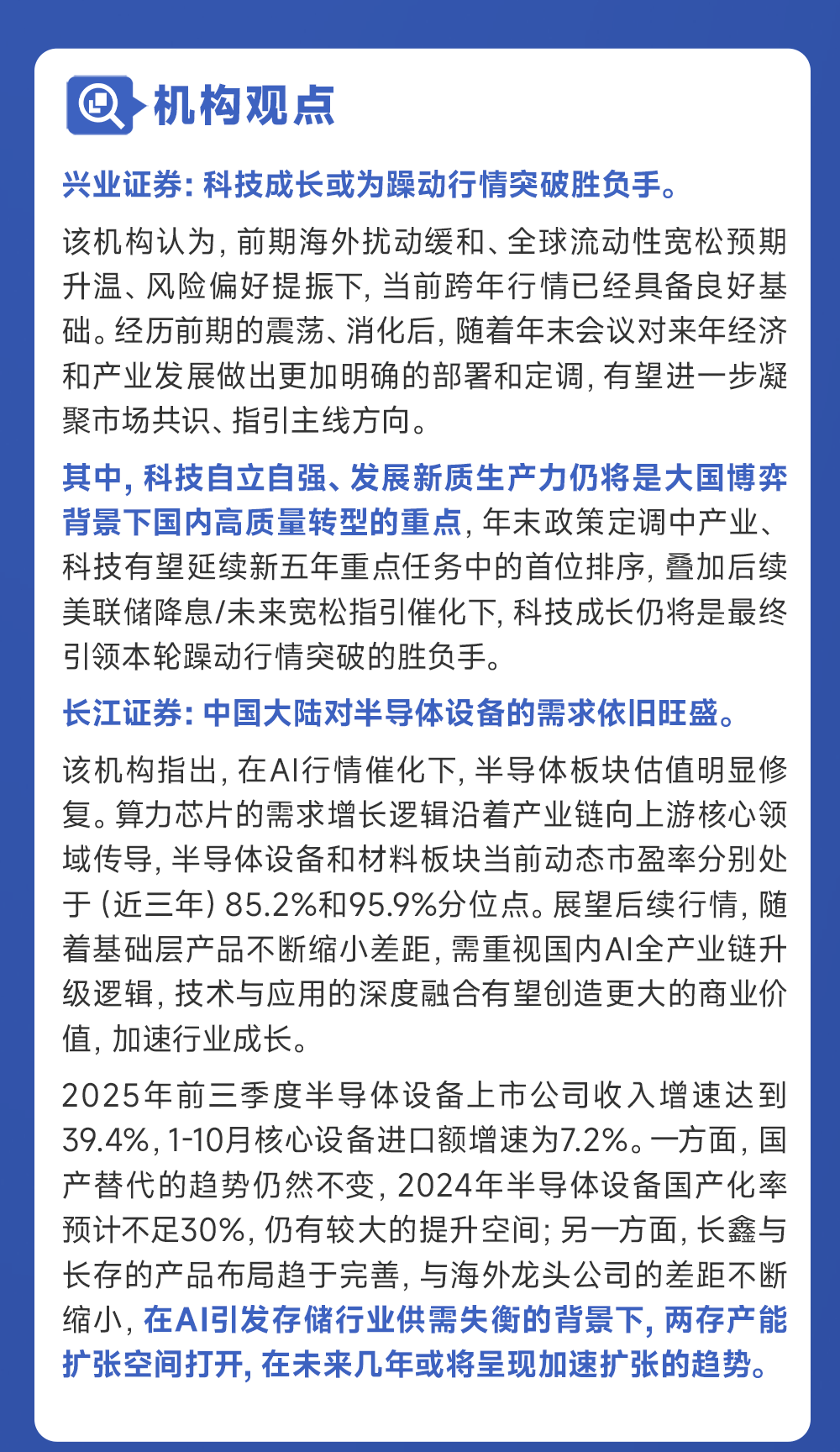 长江证券:中国大陆对半导体设备的需求依旧旺盛。该机构指出,在AI行情催化下,半导体板块估值明显修复。算力芯片的需求增长逻辑沿着产业链向上游核心领域传导,半导体设备和材料板块当前动态市盈率分别处于(近三年)85.2%和95.9%分位点。展望后续行情,随着基础层产品不断缩小差距,需重视国内AI全产业链升级逻辑,技术与应用的深度融合有望创造更大的商业价值,加速行业成长。