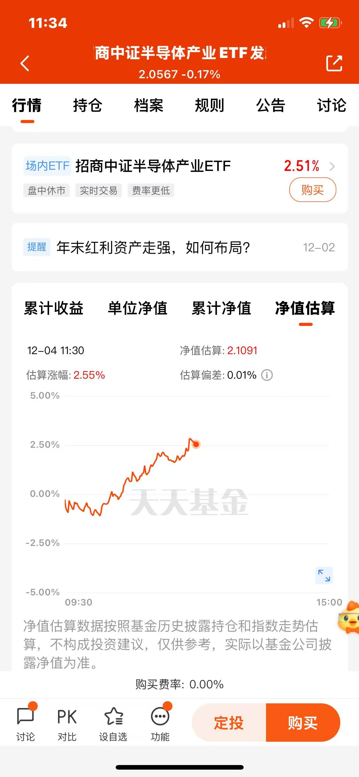 大科技赛道半导体表现亮眼$招商中证半导体产业ETF发起式联接C(OTCFUND|020465)$当前估值上涨2.55%,比机器人指数还要强