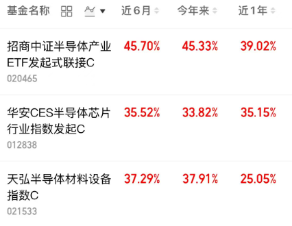 $招商中证半导体产业ETF发起式联接C(OTCFUND|020465)$近半年上涨45.70%