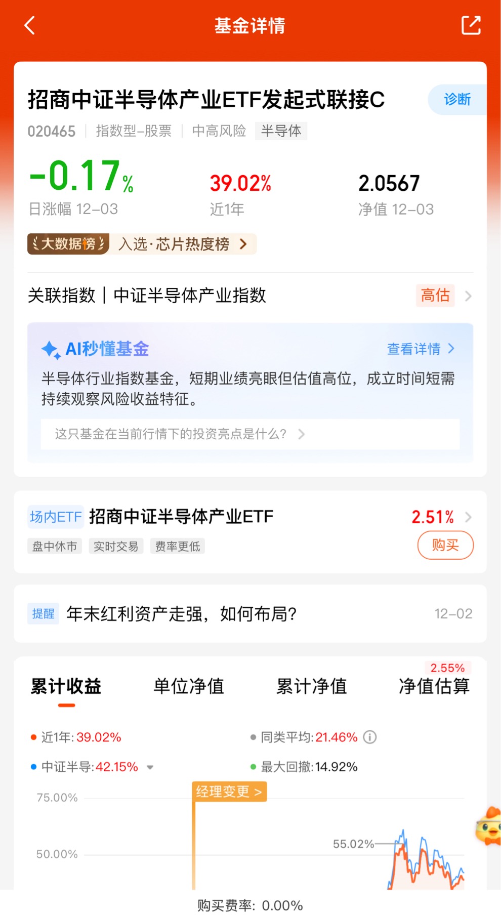 $招商中证半导体产业ETF发起式联接C$ 精准覆盖半导体设备、设计等核心环节,是投资者便捷布局AI芯片国产化与智能化浪潮的理想工具。