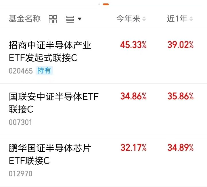 $招商中证半导体产业ETF发起式联接C(OTCFUND|020465)$近一年上涨39.02%;