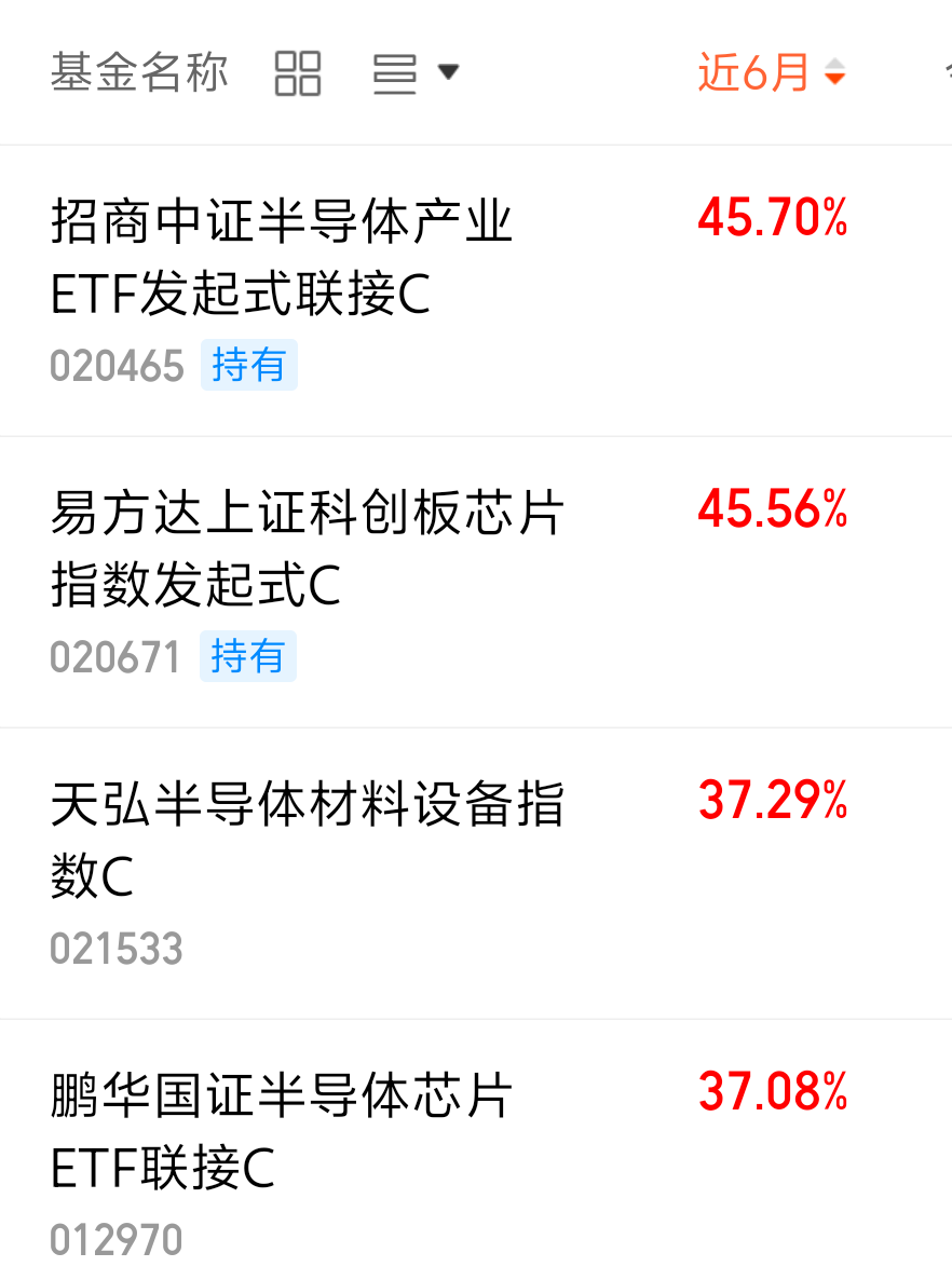 $招商中证半导体产业ETF发起式联接C$ 近6月上涨了45.7%