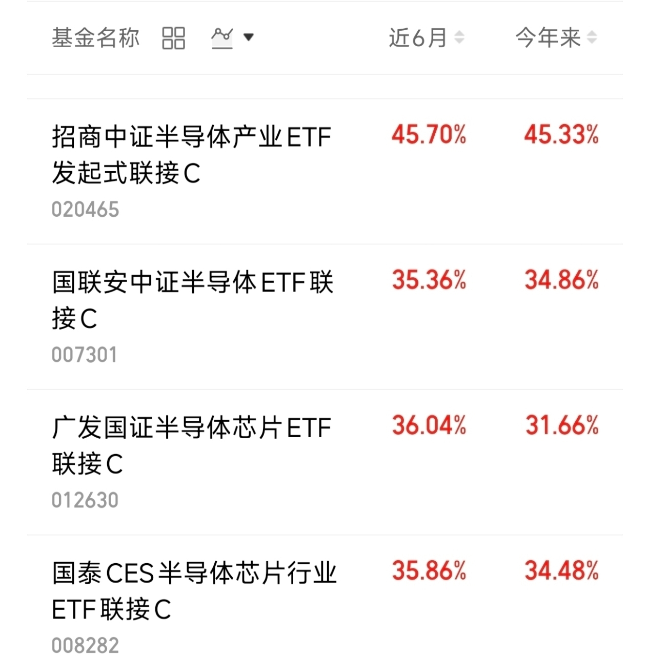 招商中证半导体产业ETF发起式联接C 今年以来已经上涨45.33%,这个基金涵盖了半导体全产业链,长期表现比较稳健。