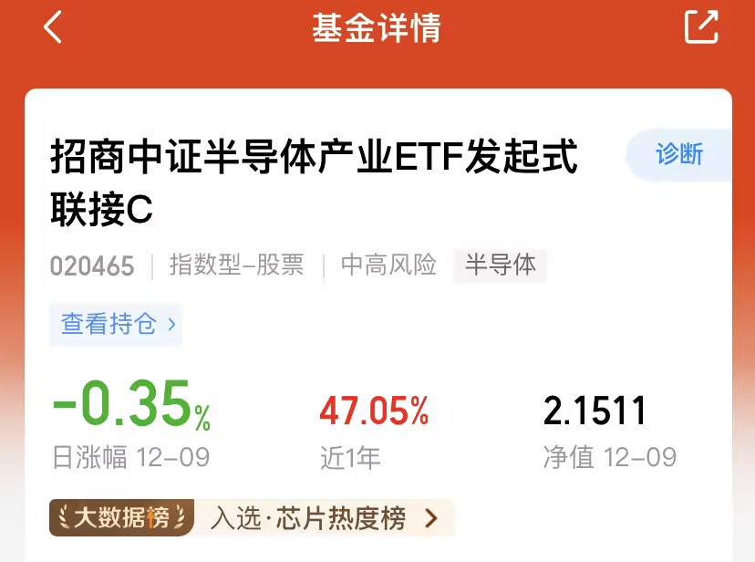 今天 3800 多家股票下跌,行情有点冷,但半导体方向跌得不多,我继续看好!$招商中证半导体产业ETF发起式联接C(OTCFUND|020465)$最近走势超给力,前十大权重股覆盖中微公司、寒武纪、拓荆科技等设备和设计龙头。近一周涨幅 4.41%,业绩表现很亮眼。现在国产替代热度越来越高,存储芯片设备国产化率正在稳步提升,长期逻辑扎实,后续仍有不少机会,继续持有。