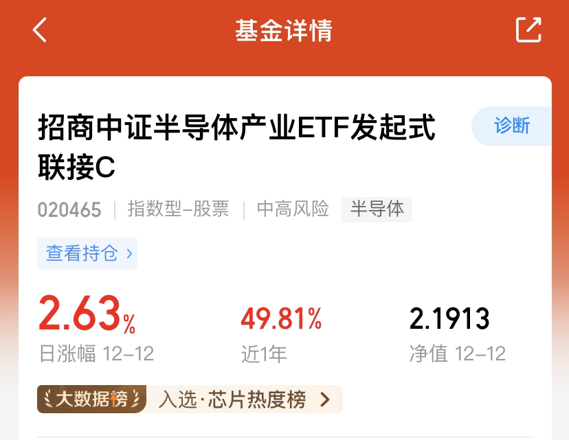 行情震荡回落,三大指数涨跌不一,板块分化明显。科技方向继续调整,半导体今天跌幅不小,但长期上涨趋势没改,不用慌。$招商中证半导体产业ETF发起式联接C(OTCFUND|020465)$持仓覆盖中微公司、北方海创、寒武纪等龙头股,年化收益率 49%,业绩很亮眼。这次板块调整,这只基金估值只是微跌,抗跌性不错,可趁机关注。