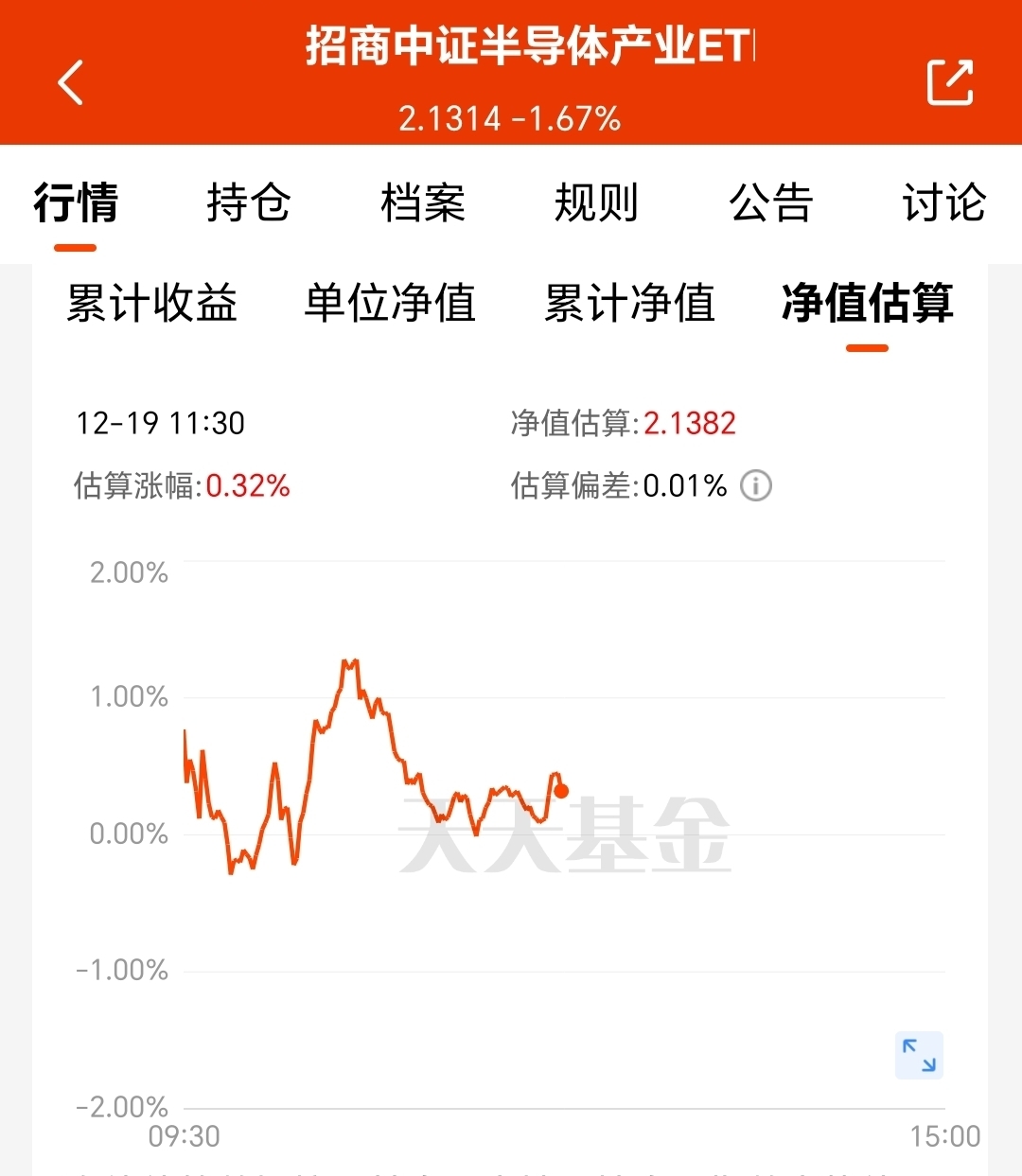 截至发文前$招商中证半导体产业ETF发起式联接C$ 预计上涨0.32%。