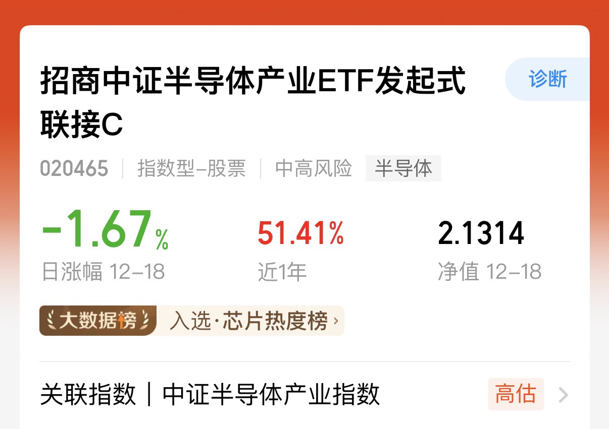 今天A股市场高开高州市场迎来不错的反弹,半导体设备板块也是回升了,相关ETF多只龙头股走强,当下AI与需求复苏驱动板块长期的行情下,叠加国产替代与中期共振半导体的产业要迎来复苏$招商中证半导体产业ETF发起式联接C$ 这只基金覆盖半导体产业链龙头,前十大重仓股集中度又高,贴合行业高景气主线,业绩做的也不错