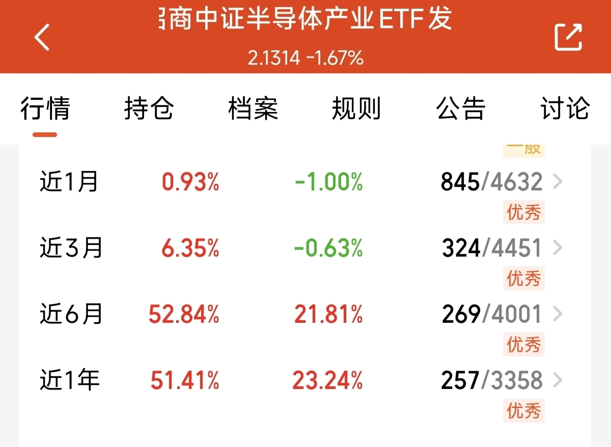 $招商中证半导体产业ETF发起式联接C$ 这是聚焦半导体产业的指数基。紧密跟踪中证半导体产业指数。全面覆盖了半导体的上下游产业链。所以说无论哪一个环节上涨都能够受益。长期业绩表现的一直不错。近3月上涨了6.35%,而同期同类平均业绩都是负收益,近半年上涨了52.84%。长期稳定盈利的能力强。而且遇到波动回撤控制也是比较稳定。我看好基金在未来半导体行情中的成长表现。