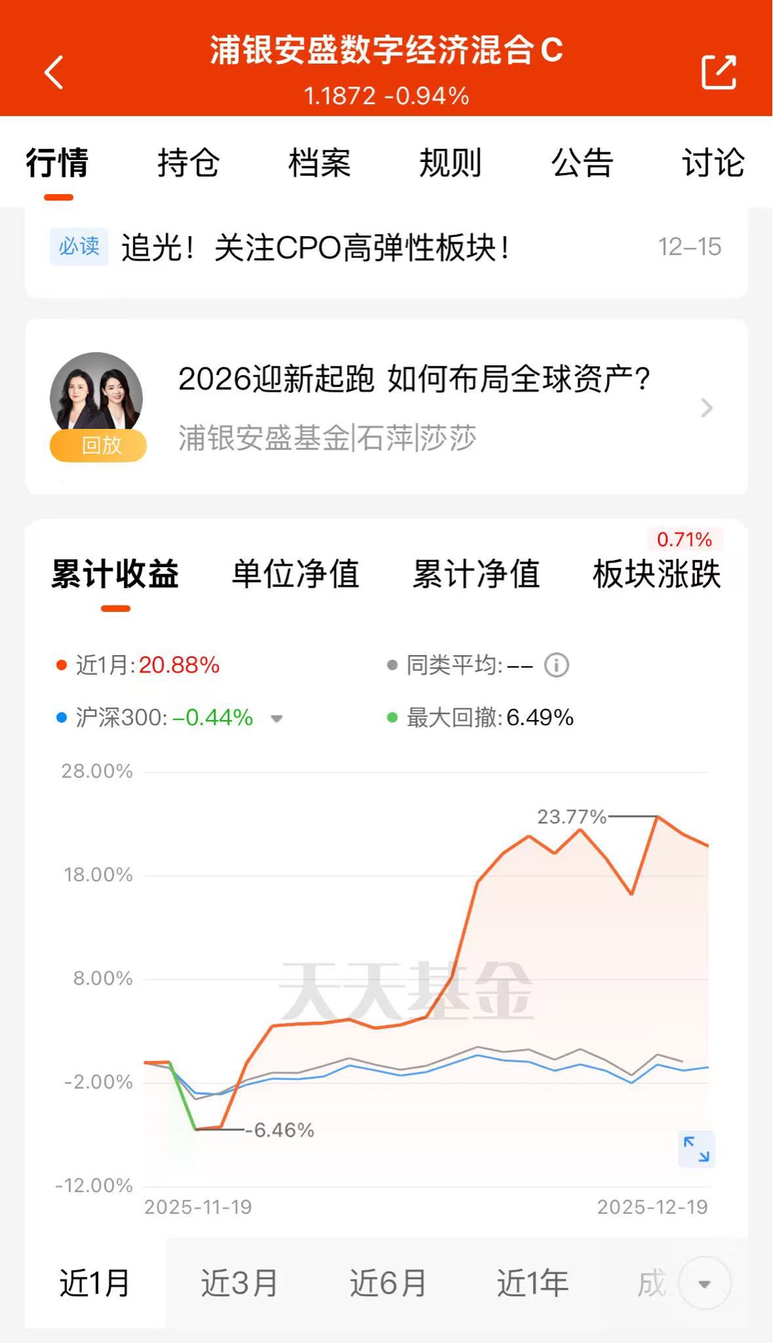 跌的少的cpo$浦银安盛数字经济混合C$ ,从上车开始都很优秀,还是超出预期了,前面19个交易日涨了14天的表现已经证明基金经理的能力了#2025年 你的投资战绩如何?#