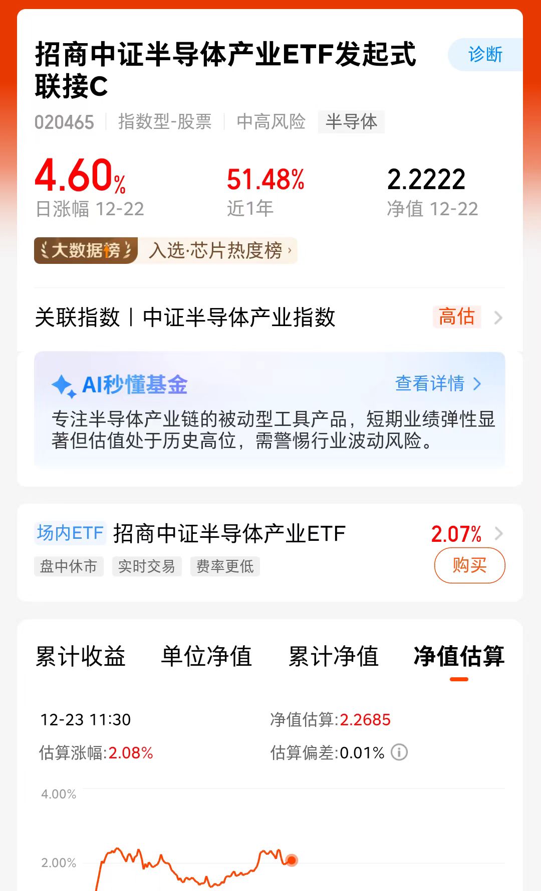 $天弘芯片产业ETF联接A(OTCFUND|012552)$