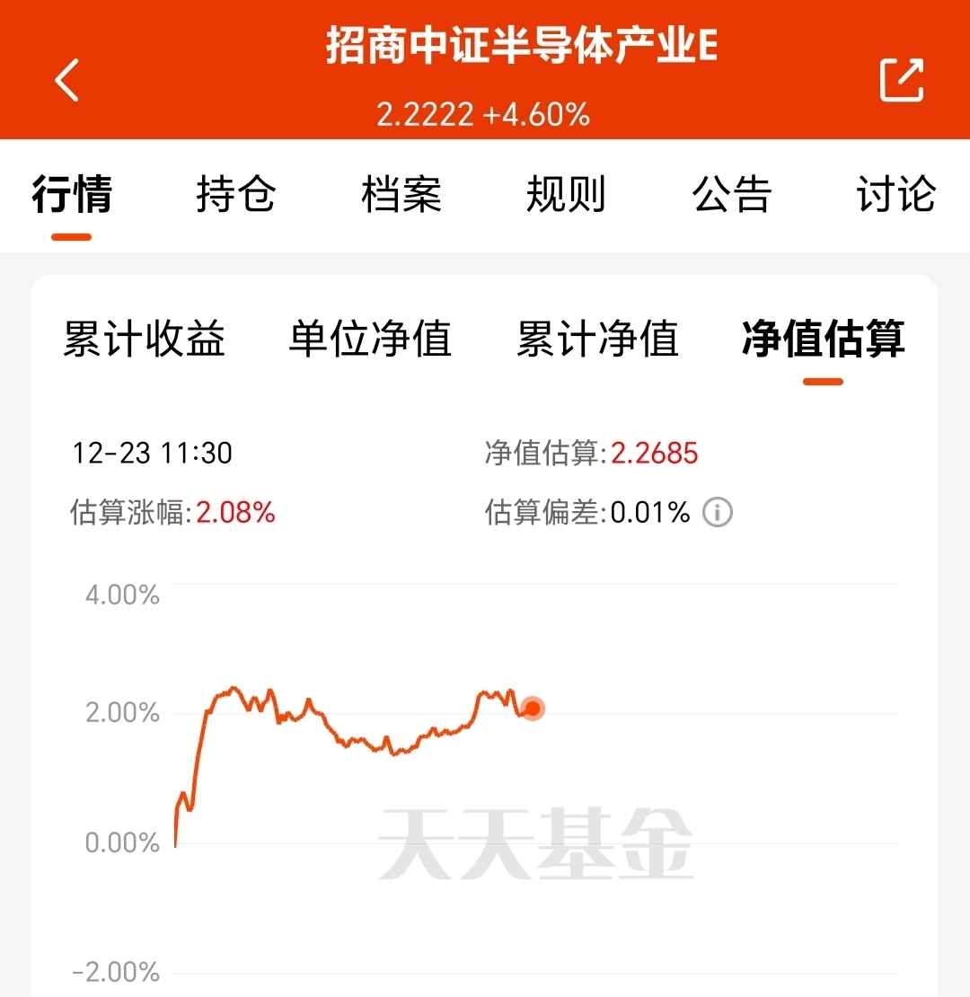 截至发文前$招商中证半导体产业ETF发起式联接C$ 预计上涨2.08%。