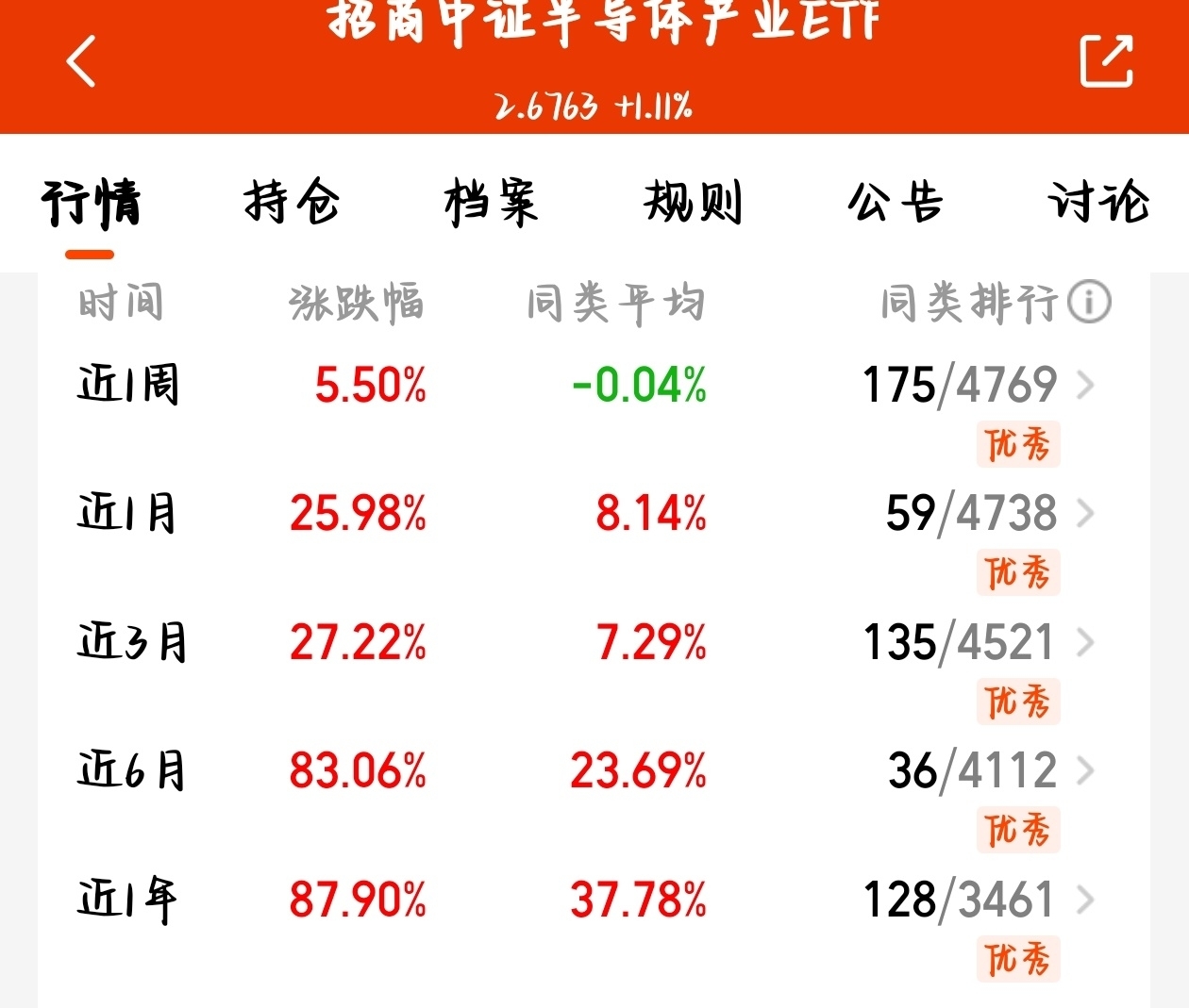 近期半导体彻底炸了!海光信息大涨,算力+国产替代双风口拉满!$招商中证半导体产业ETF发起式联接C$ 太懂踩点,重仓中微、北方华创这些设备龙头,覆盖全产业链核心股。成立以来收益超112%,C类免申购费,低门槛就能上车,跟着政策红利吃硬科技成长,稳赚不踩坑