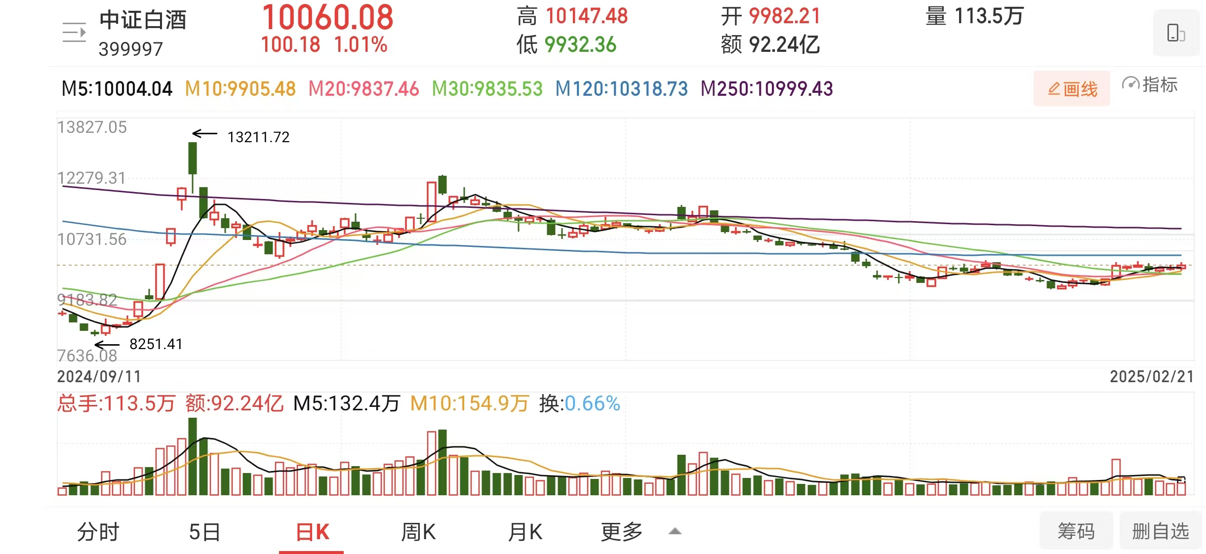 1.白酒:今天上午中证白酒指数涨1.01%,走出一根红色小阳线,下影线来到了10天均线的上方,实体已经收复了5天均线,K线重心与昨天小幅上行,5天均线微向上,10天均线也渐渐跟了上来,说明指数今天有转强信号。今天上午白酒的量能目前是113.5万手,全天量能估计在200万手左右,量能有较明显放大,应该可以满足5天10天均量。我认白酒今天的放量上涨仅仅是受整体情绪较好的带动,因此持续性不会很好。对白酒今年的表现偏谨慎,目前持有$招商中证白酒指数(LOF)A$ ,今天不操作。