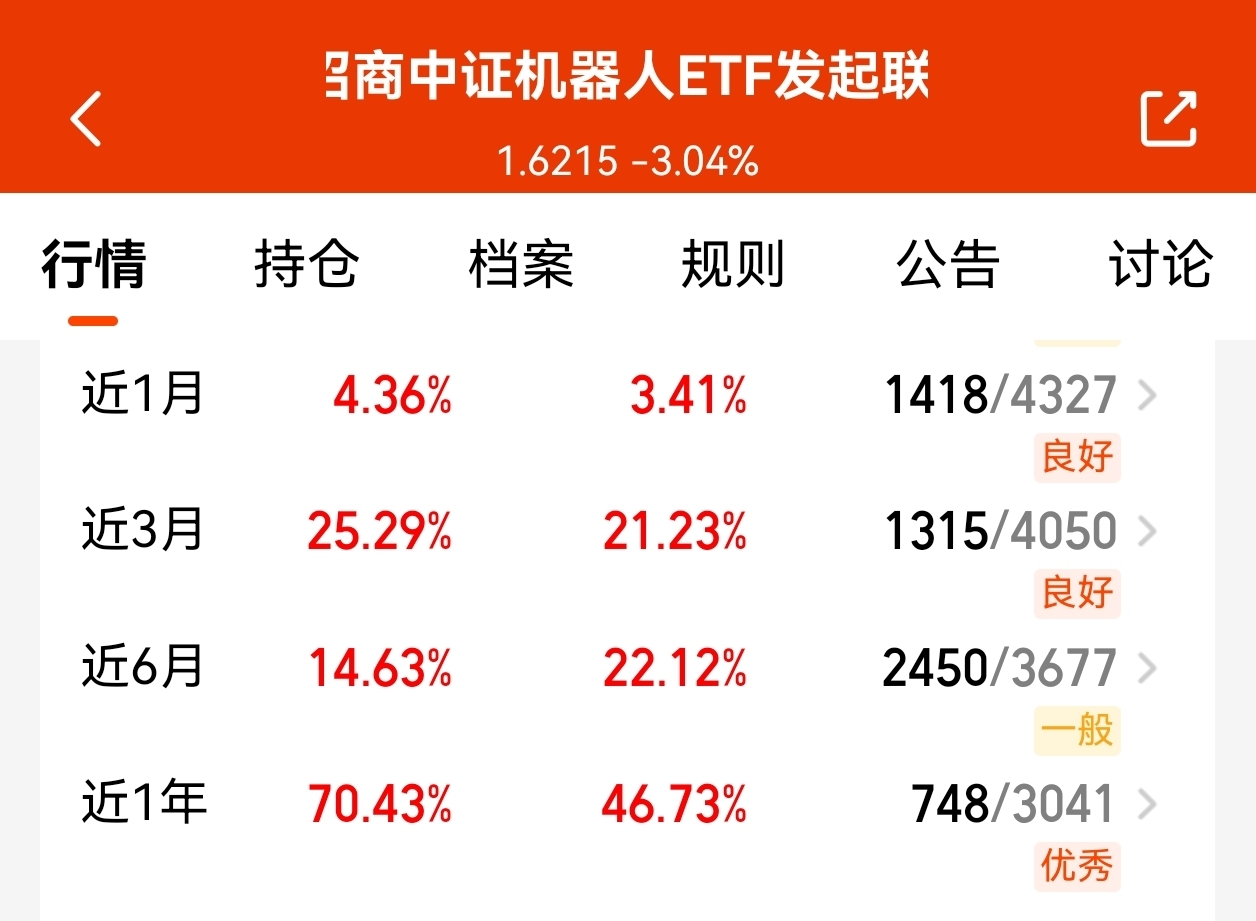 $招商中证机器人ETF发起联接C$ 基金精准聚焦机器人产业突破与业绩确定性双重逻辑,近期表现突出,近三个月上涨25.29%,近一年收益率高达70.43%,大幅领先其他同类基金,综合来看,机器人产业正处于从实验室走向规模化应用的关键节点,中长期成长空间广阔,持续关注一下。