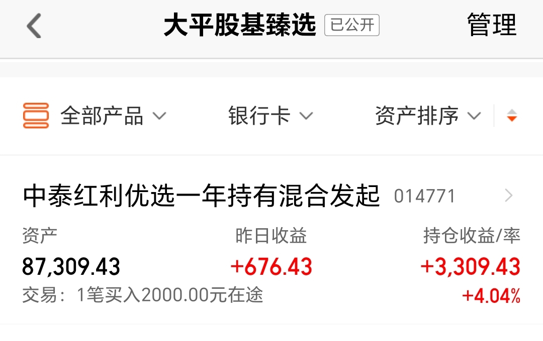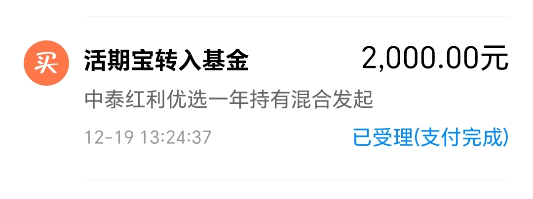 今天我买入$中泰红利优选一年持有混合发起(OTCFUND|014771)$2000块钱。