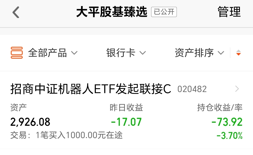今天我买入$招商中证机器人ETF发起联接C(OTCFUND|020482)$1000块钱。