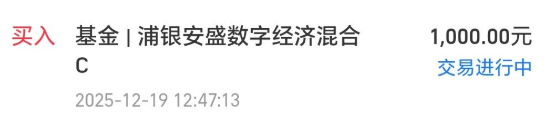今天买入$浦银安盛数字经济混合C(OTCFUND|025422)$1000块钱。