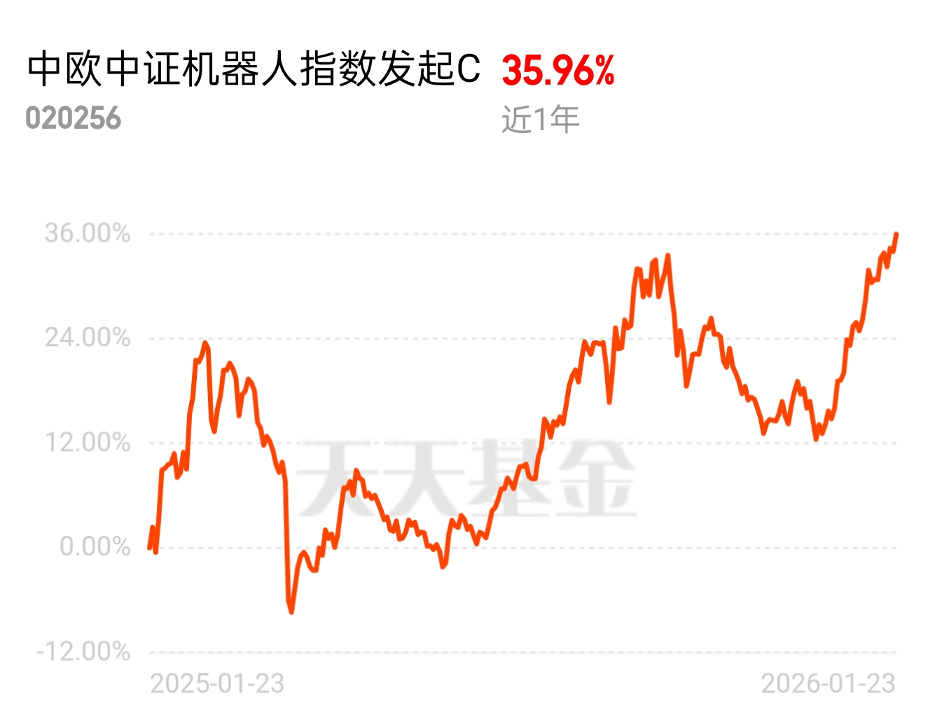 注意看!1 月 25 日总台官宣银河通用机器人成为 2026 春晚指定具身大模型机器人,人形机器人利好不停歇,中欧中证机器人指数发起 C 近 6 月 27.31%,现在进场刚好赶上这波风口,别犹豫$中欧中证机器人指数发起C$