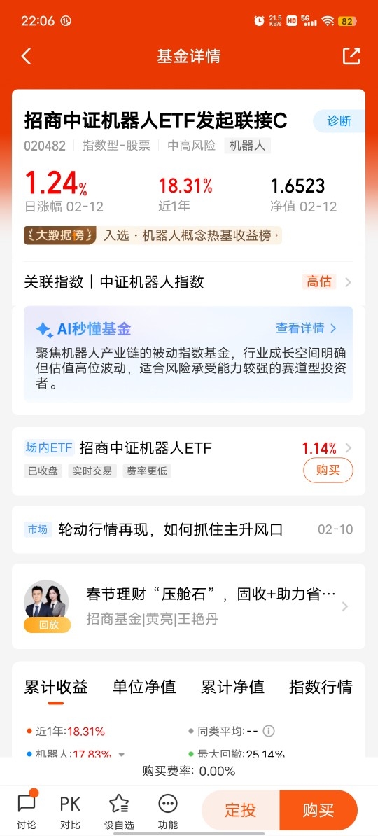 未来,随着技术不断迭代,机器人会渗透到更多领域,从工业生产到生活服务,从特殊场景到日常陪伴,它的成长潜力远不止于此。选择招商中证机器人ETF发起式C,就是搭上这趟成长快车,陪着机器人产业一起成长,分享时代发展带来的红利,这份投资,既踏实又有盼头。@招商基金 @基民01g381520x @财来道CLD