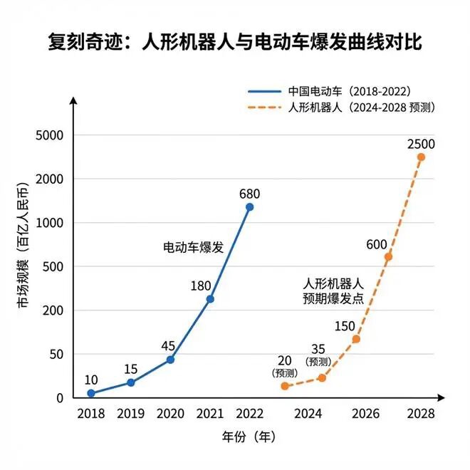 这种从怀疑到爆发的叙事,像极了2019至2020年的中国电动车市场。那时,新能源汽车渗透率在5%以下徘徊,被许多人视为“骗补”的产物。然而拐点骤至,渗透率在2021年跃升至13.4%,2022年冲至25.6%,从此势不可挡。大摩描绘的机器人增长曲线,几乎是这条“电动车曲线”在2026年的平移复刻。那么,为什么是2026年?报告指出的核心逻辑,是供应链的成熟度。而在我看来,这本质上是“成本临界点”的到来——只有当机器人的综合成本低于它所能替代的人力时,真正的商业化浪潮才会启动。历史证明,把高端产品价格“打下来”的能力,是中国制造最深刻的定义权,从光伏组件到动力电池,无不如此。如今,轮到人形机器人的“关节”和“躯干”了。