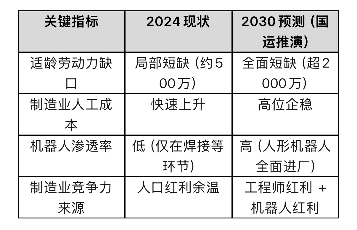 当我们跳出技术与商业,从更宏观的视角审视,会发现人形机器人对于中国的意义,远不止一个新兴产业那么简单。它关乎一个根本性问题的答案:在“人口红利”消退后,如何维持“世界工厂”的地位?国家统计局数据显示,我国16-59岁劳动年龄人口的总量和占总人口比重,已持续多年下降。工厂“招工难”、“用工贵”从沿海蔓延至内地。面对劳动力总量减少的趋势,通过“机器人红利”填补缺口,已成为保持制造业竞争力的战略必选项。