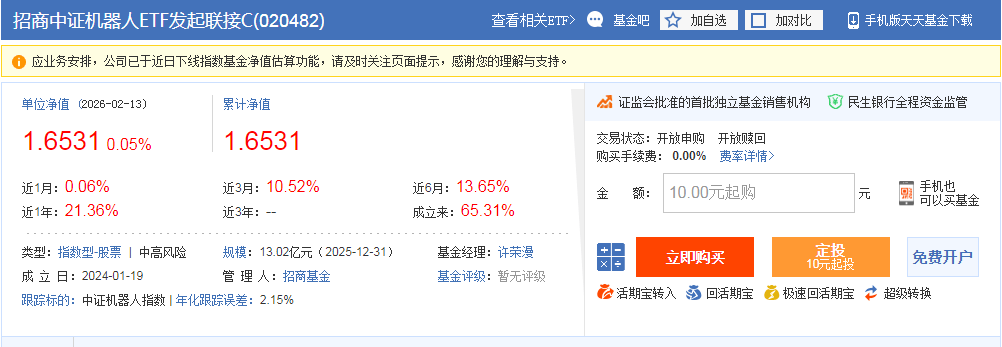 $招商中证机器人ETF发起联接C(OTCFUND|020482)$