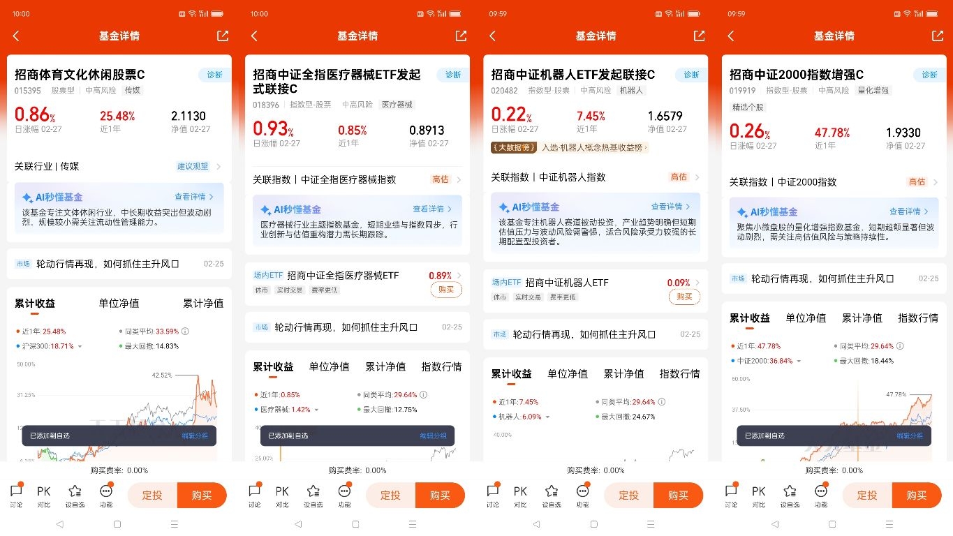 我是招商基金的忠实粉丝,目前定投持有$招商科技创新混合C$ $招商匠心优选混合C$ $招商核心竞争力混合A$ 等多只基金,对收益回报和持有体验感到非常满意!我会继续配置$招商体育文化休闲股票C$ $招商中证全指医疗器械ETF发起式联接C$ $招商中证2000指数增强C$ 等招商基金的产品,并长期持有!@招商基金
