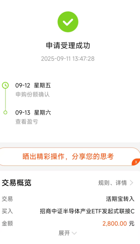 在甲骨文大涨的刺激下,今天大科技集体爆发,强者恒强,今天半导体大涨,牛市中踏空确实比被套更难受啊,今天追一波$招商中证半导体产业ETF发起式联接C(OTCFUND|020465)$,紧跟半导体指数,风格稳定投的明白,而且指数基金综合费率低持有7天就免赎回费更方便操作,整体性价比更高。今年科技是最明确的主线,没有之一,而作为科技的核心,半导体板块相关利好多,投资确定性高,确实很值得持续关注。