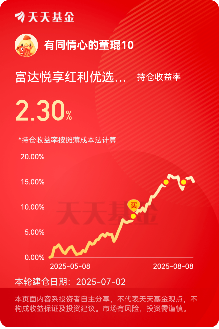 我看中红利赛道,就是波动小,还有股息拿,作为长期标的不错$富达悦享红利优选混合C$ #晒收益#