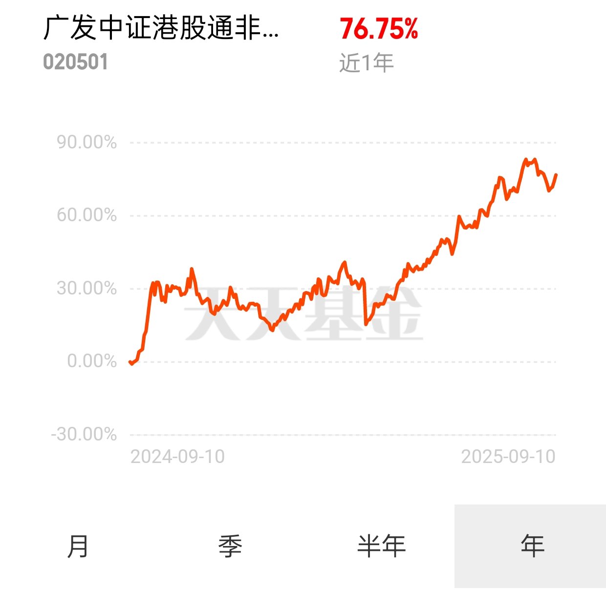 最近市场轮动太快,科技股今天涨明天跌,追热点总踩坑。利率还在下行,配置点非银金融总不会错。刚好趁这只$广发中证港股通非银ETF发起式联接C$(020501)最近回调了点布局一波,这基跟踪的港股通非银ETF保险业占比超过65%,还涵盖稳定币概念,年初以来规模增长超过23倍,作为底仓再合适不过了#“924行情”一周年 你赚了多少?#
