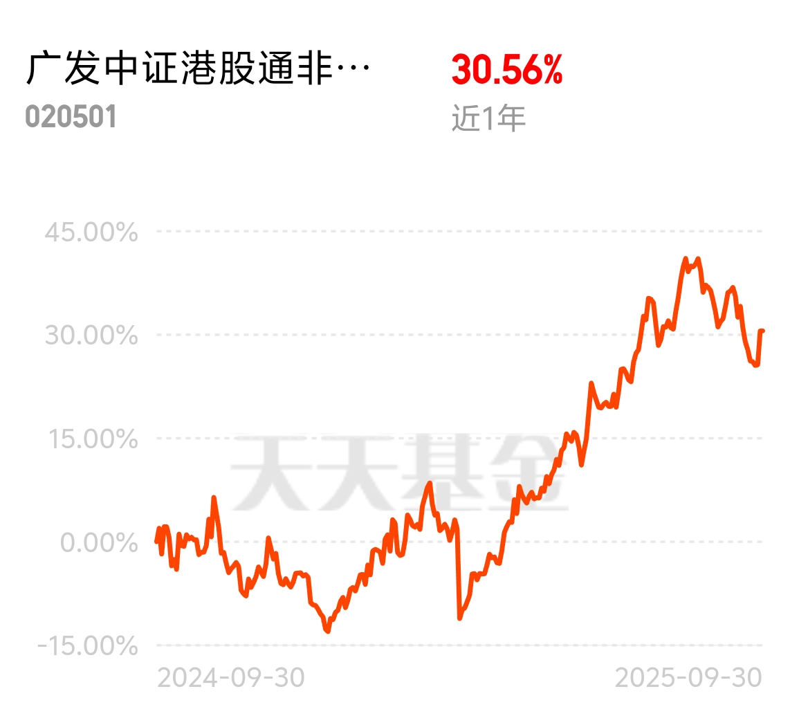 不知道投啥就跟着一起投$广发中证港股通非银ETF发起式联接C$ 呗,反正这只长期涨幅没让人失望过