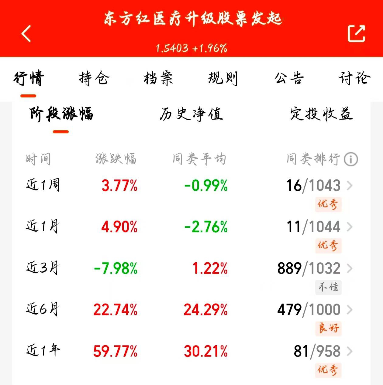 东方红医疗升级聚焦创新药前沿,昨天涨1.96%近六月收益22.74%。板块触底后修复动能充沛,倒车接人良机莫错过。