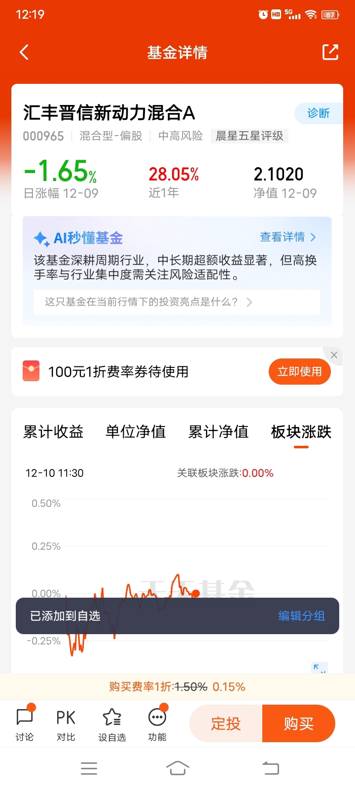 对了,这只基金C类份额的购买费率是0%,短期持有成本很低,也方便我根据市场节奏灵活调整。我其实更看重它在降息周期里的“双向适配性”:既能靠周期行业挣基本面修复的钱,又能靠价值风格吃估值抬升的红利,这种“攻守兼备”的超额收益来源,比单一赛道基金更适合当前的震荡市。#摩尔线程市值超3300亿!估值逻辑是什么?# #茅台批价两年跌43%!反映了什么问题?# #低估补涨号启航# #青禾创作计划# #观点搭子团火热招募中!# @天天基金创作者中心 @汇丰晋信基金