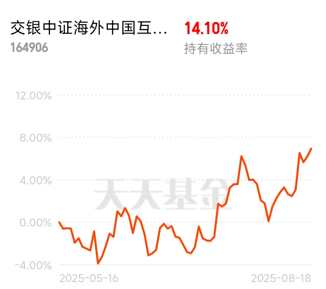 $交银中证海外中国互联网指数(LOF)A$ 近一年涨超40%,远超同类基金,可以长期持有下去