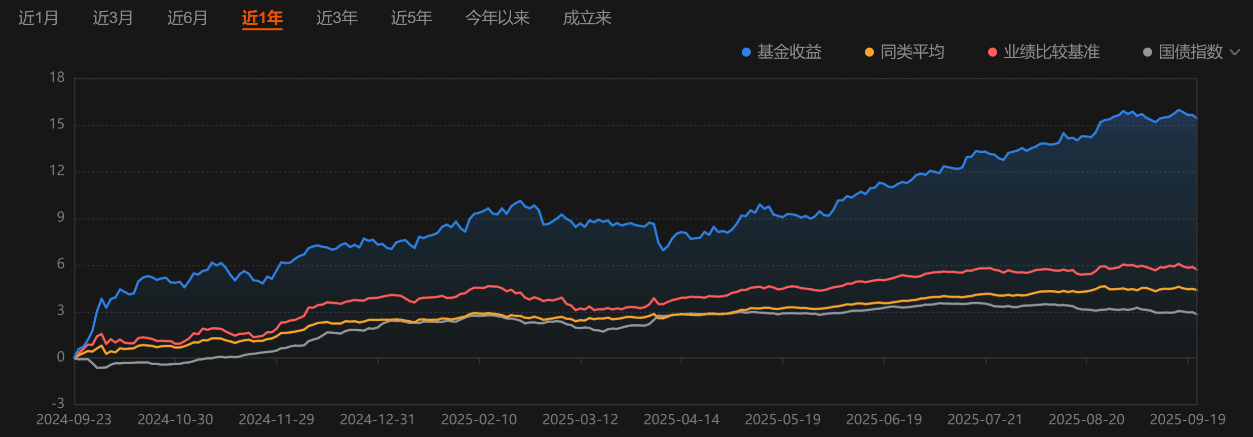 最近债市虽然有点小波动,但完全不用慌好嘛!要我说,其实这是市场的正常起伏~你们看,美联储降息这个大背景,其实对债市和“固收+”产品是长期利好的,就像给市场吃了一颗定心丸,中短端利率下行让债市底子更稳了。这种市场环境下,既要收益又要稳的“固收+”产品真是闪闪发光,而$华商安恒债券C$ (020522)就是其中一颗亮眼的星,近一个月产蛋79颗,近一年收益高达15.44%,六个月上涨6.36%,业绩相当能打,远超同类产品。