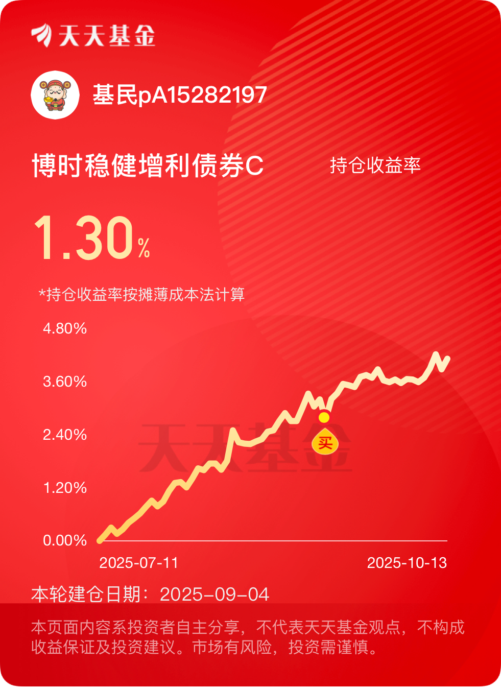 近期债市缓步回暖,$博时稳健增利债券C$ 自然也跟着受益,昨天就有23个蛋入账,近6个月涨了7%有余,年收益稳超9%了,收益排名很靠前。最近刚出的境外机构债券回购新政简直是为它量身定做的利好,央行、证监会和外汇局联合允许境外机构做质押式和买断式回购,之前境外机构急用钱只能抛售国债,现在靠回购就能盘活资产,直接稳住了国债价格。这只基金持仓里的国债资产这下更安全了,收益波动自然就小,不像有的债基一遇到外资抛售就跟着跌。加上它的权益部分配置也特别有远见,一季度就加仓了有色金属、建材这些底部预期改善的板块,刚好赶上最近周期股的反弹行情。近期科创50指数逆势上涨1.40%,这只基金的权益仓估计也沾了光,毕竟制造业PMI虽然回升但还在收缩区间,资金更愿意流向这类有业绩支撑的板块。最让我满意的是它的平衡术,债券部分靠政策红利稳收益,权益部分抓结构性机会增收益,三个月收益率都超4%了,比存银行理财强太多!#大消费板块逆市拉升!行情能否持续?#